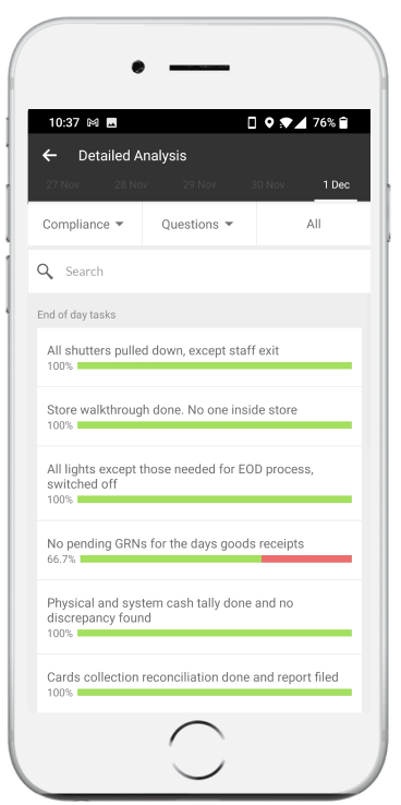 - Know which stores need your attention, basis SOP compliance and completion status