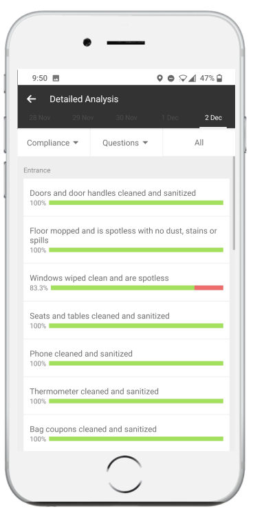 Out of box reporting for all underlying apps ensures that you get real-time visibility into SOP compliance at stores, with visual evidences to support.
